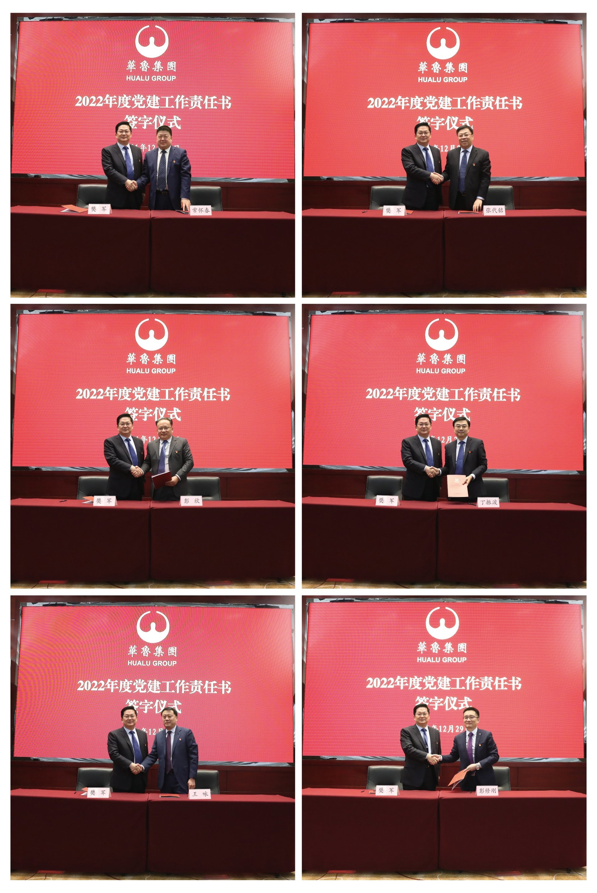 12月29日下午,華魯集團召開黨的建設工作領導小組會議,黨委書記、董事長樊軍代表集團黨委與各公司黨委“一把手”簽訂《2022年度黨建工作責任書》,以“軍令狀”方式壓實管黨治黨責任,實現黨建任務可檢查、可考核、可追究,推動黨建深度融入生產經營,以高質量黨建引領高質量發展,用高質量發展成果檢驗高質量黨建成效。