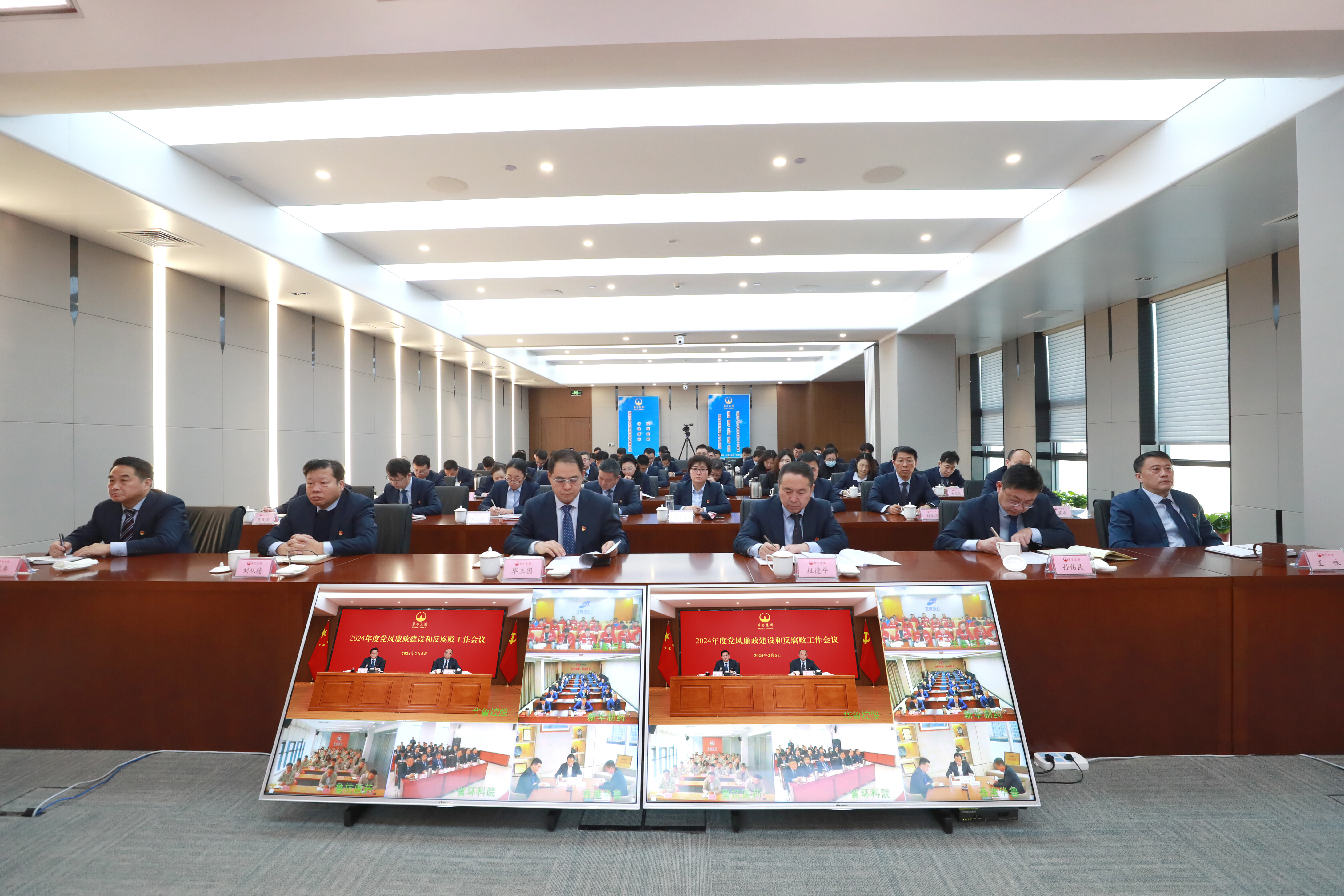 會議以現場加視頻形式召開,控股公司設主會場,華魯恒升、新華制藥、魯抗醫藥、省環科院、香港華魯設分會場。